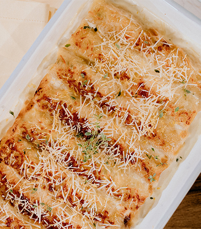 Bake uncovered for 18-20 minutes, or until golden brown and cream has reduced by half.