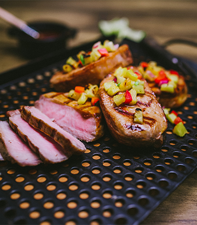 - Brush chops with glaze mixture. Continue grilling turning once, about 1-2 minutes per side or until instant read thermometer registers 155˚C.